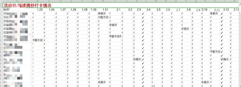 据悉,1月25日至2月18日期间,学院面向全体学生开展了持续25天的寒假“云”打卡自律行动。此次活动依托微信群、QQ群等平台,以线上打卡的形式进行记录监督,分为专业素养、英语学习、身体素质、启迪智慧四大板块。在前期准备中,每个板块均建立相应的QQ群,整理参与人员名单、制定评比规则、精准跟踪学生打卡情况。同学们对这些板块踊跃报名,积极参与,成功参与的同学至少参加两个板块,且每个板块至少打卡21天,形成了“你追我赶”“相互帮助”“携手并进”的良好学习氛围。活动达到了预期的效果,起到“21天效应”。