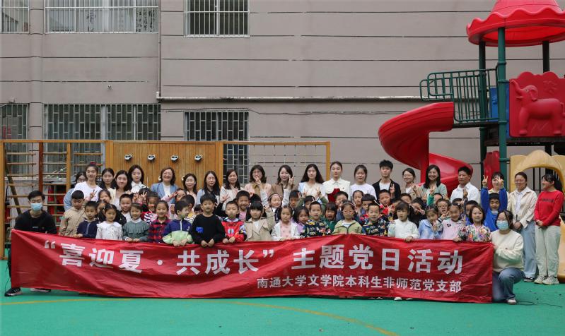 5月6日上午,文学院本科生非师范党支部赴通师二附幼儿园开展“喜迎夏·共成长”主题党日活动。学院党委书记陈燕,党委副书记、副院长袁小平,南通市崇川区新城桥街道党工委副书记、办事处主任陈勇出席活动。