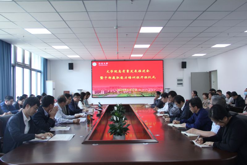 5月15日下午,文学院举行高质量发展推进会暨干部履职能力培训班开班仪式。南通大学发展规划处处长朱广华,学校年度综合考核工作领导小组办公室常务副主任、机关党委书记、党委组织部副部长顾璟出席,学院党委书记陈燕主持会议。