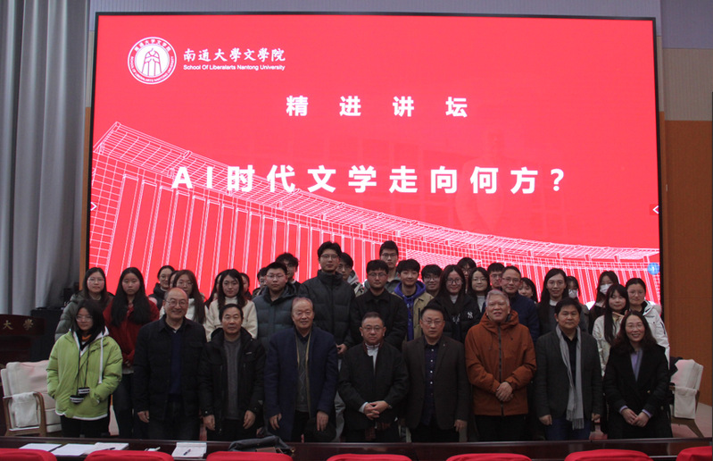 12月16日下午,精进讲坛专题讲座“AI时代文学走向何方?”在23号楼D202会议室成功举办。北京师范大学文学院教授、教育部“长江学者”特聘教授刘勇,华中师范大学文学院教授、教育部“长江学者”特聘教授王泽龙,陕西师范大学文学院教授、人文社会科学高等研究院院长李继凯,南京大学文学院教授、南京大学中国新文学研究中心副主任沈卫威,南京大学文学院教授、南京大学中国新文学研究中心执行主任张光芒,武汉大学文学院教授、教育部青年长江学者李遇春六位专家学者莅临现场,文学院院长顾金春教授主持本次论坛。