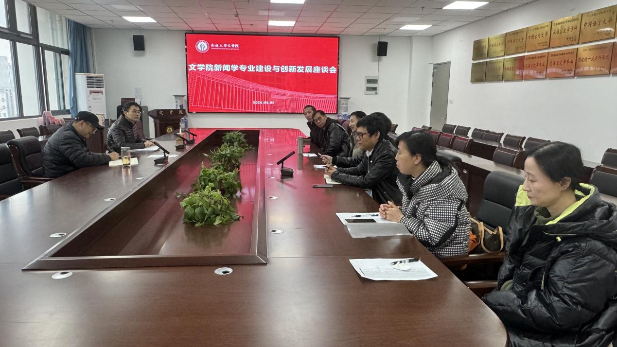 2025年3月5日,文学院新闻学专业建设与发展座谈会在23号楼502会议室召开。文学院院长顾金春、副院长施贤明出席座谈会。