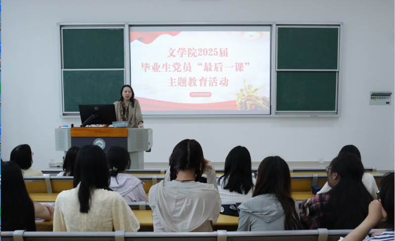 为全面落实新时代高校党建工作要求,扎实推进毕业生党员教育,进一步强化党员身份意识与责任担当,6月20日下午,文学院组织开展2025届毕业生党员“最后一课”主题教育活动。