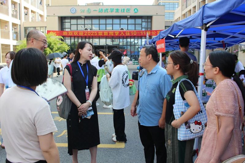 文学院院长顾金春,党委书记陈燕,党委副书记、副院长阚兴辉等学院领导亲临迎新现场,慰问参与迎新工作的师生及志愿者。在走访新生宿舍过程中,学院领导细致了解新生的环境适应、饮食习惯、学习准备和未来规划等情况,耐心解答新生及家长提出的问题,并送上祝福与鼓励。2025级辅导员和班主任与新生进行了面对面交流,勉励大家主动融入、积极探索,绘就丰富多彩的大学生活。