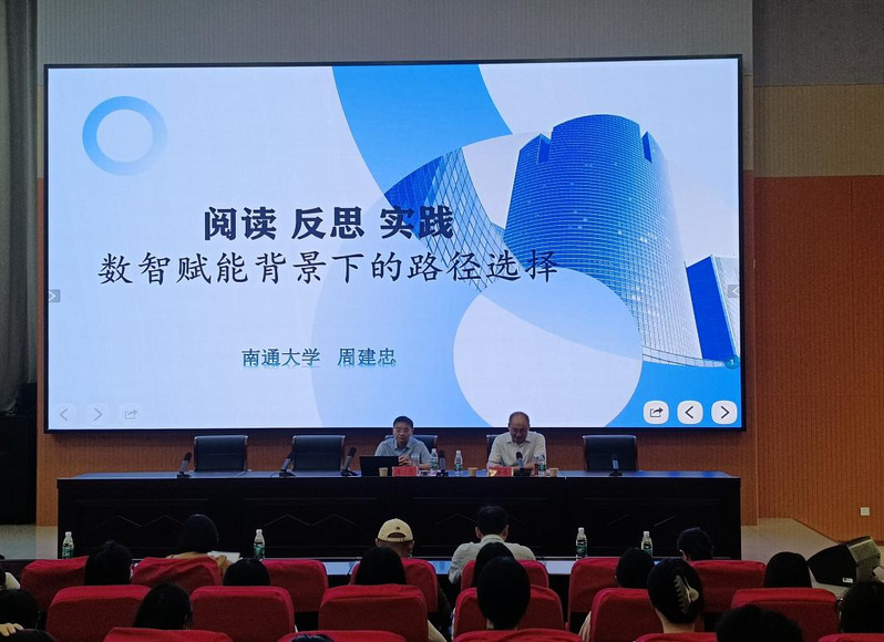 9月11日上午,文学院邀请国家万人计划教学名师、南通大学原副校长兼文学院院长、范曾艺术馆终身馆长——周建忠教授为2025级硕士研究生及导师授课,本次讲座以《阅读反思实践——数智赋能背景下的路径选择》为主题,以科技发展中的社会变革为背景,围绕教师培养方向和学生成长路径展开。