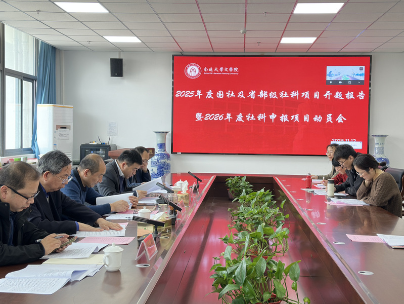 2025年11月12日下午,我院2025年度国家社科及省部级社科项目开题报告暨2026年度社科申报项目动员会在23号楼502会议室顺利召开。出席本次会议的专家有:中山大学中文系彭玉平教授、复旦大学中文系栾梅健教授、南京师范大学文学院沙先一教授、南京师范大学新闻与传播学院刘永昶教授、江西师范大学文学院杨志平教授。