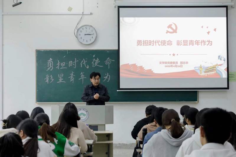 4月23日下午,文学院分党校举办第五期党员发展对象暨预备党员培训班第四讲,文学院党委委员邵志华教授以《勇担时代使命 彰显青春活力》为题开展专题讲座。