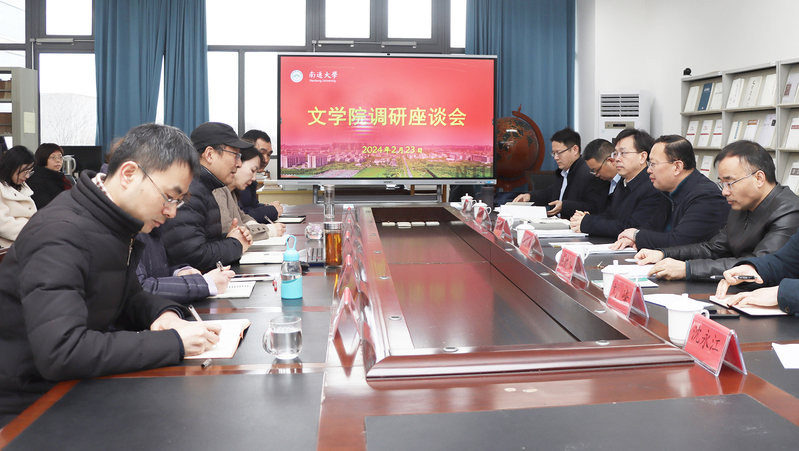2月23日上午,校党委书记尚庆飞到文学院调研学科建设工作,校党委常委、副校长陆俊杰,校党委常委、副校长施佺陪同调研。