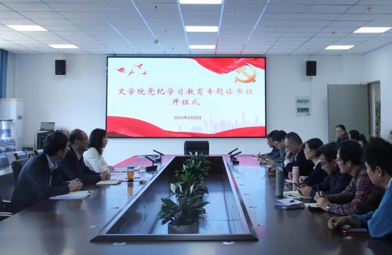 5月8日下午,文学院举行党纪学习教育专题读书班开班式暨理论中心组(扩大)学习会。学院党委书记陈燕主持会议并作开班动员讲话。许富宏教授作专题辅导报告。