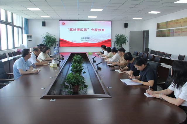 为持续巩固深化党纪学习教育成果,推动党员干部不断筑牢思想防线,结合“算好廉政账”专题教育月活动安排,9月29日,文学院党委开展“算好廉政账”专题教育活动。院党委书记陈燕主持会议。