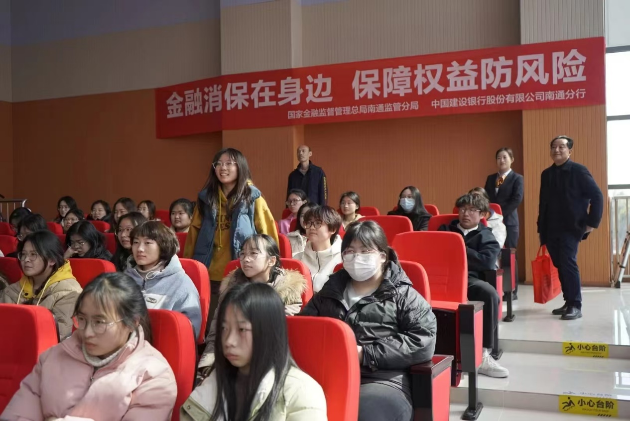 313日,为提升在校大学生的金融素养和风险意识,确保他们能够有效地维护自身权益,文学院携手国家金融监督管理总局南通监管分局以及中国建设银行股份有限公司南通分行,共同开展了一场主题为“金融消保在身边,保障权益防风险”的宣传教育活动。